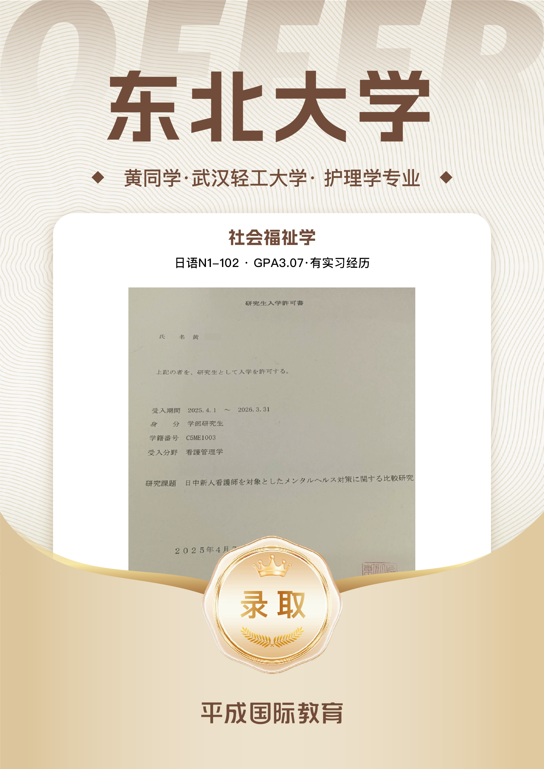 日语能力突出,有实习经历